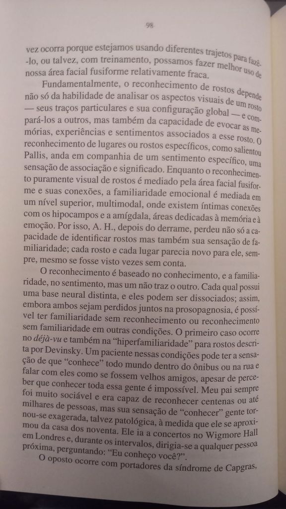 “Até que ponto somos os autores, os criadores de nossas sensações? Quanto elas são predeterminadas pelo cérebro ou pelos sentidos com que nascemos, e em que medida moldamos nosso cérebro pelo que vivenciamos?“. Em outras palavras, Sacks estava obcecado pela natureza da realidade objetiva – e o quanto ela existe a partir da consciência, e o quanto a consciência é criada pela percepção desta mesma realidade.