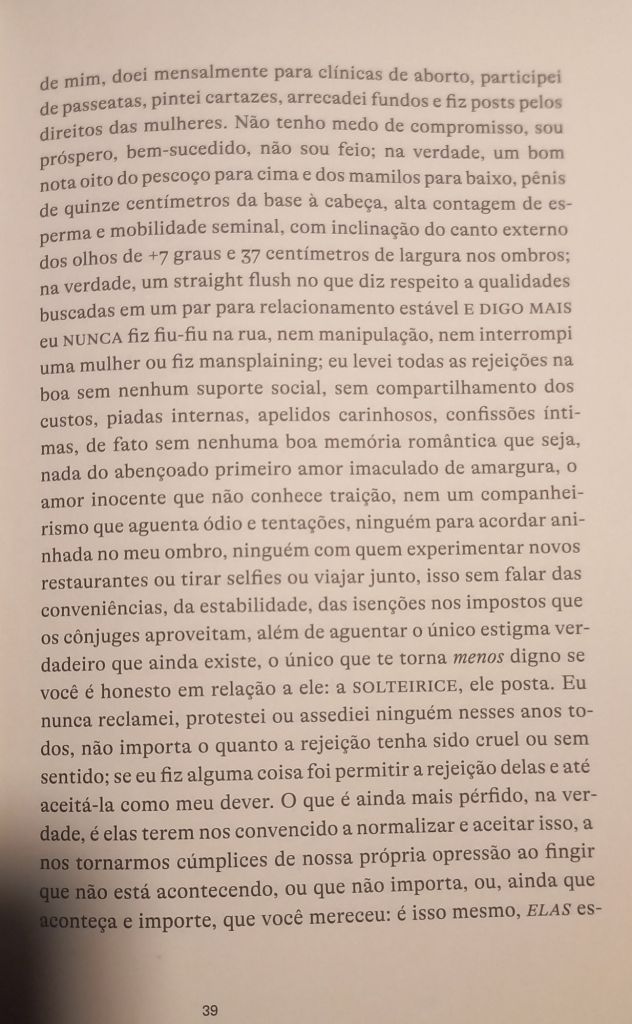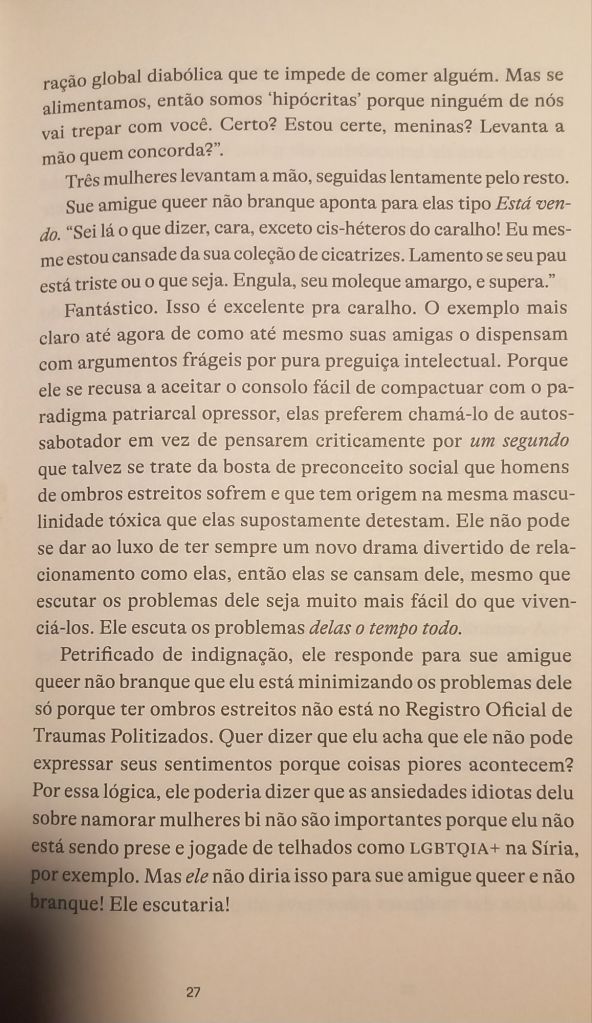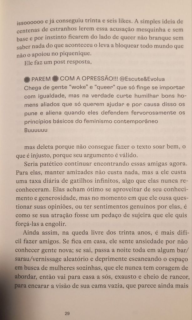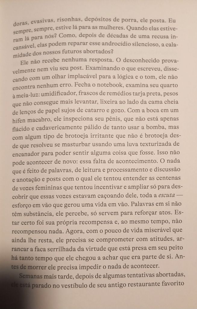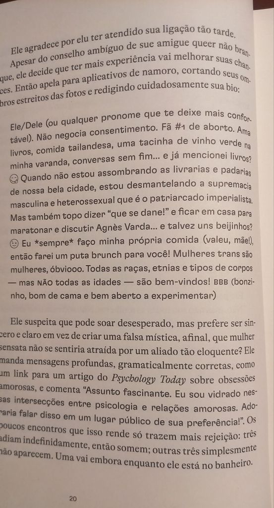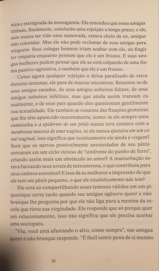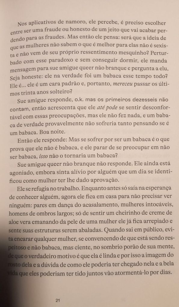 Muito por conta da espertíssima tradução de Isadora Sinay, A Rejeição, de Tony Tulathimutte (Fósforo), é uma leituras muito divertida. Sinay transpôs ao PT BR as neuras e os pitis da Gen Z e millenial com um ouvido tão afiado que parece que estamos passeando pelos reels irônicos do Juvi Chagas ou pelos chororôs de Pedro Vinício. Todos os contos deste bostoniano filho de tailandeses são protagonizados por figuras que basicamente não conseguem transar: homens brancos feministos, gamers asiáticos gays, empreendedores babacas, gordinhas solitárias e pessoas agênere. Os desqueridos passam de um conto para outro na categoria de coadjuvantes, dando ao livro um jeitão de romance – e a linguagem ao mesmo tempo empática e sarcástica, que lembra Mary Gaitskill, torna tudo embaraçosamente uniforme.