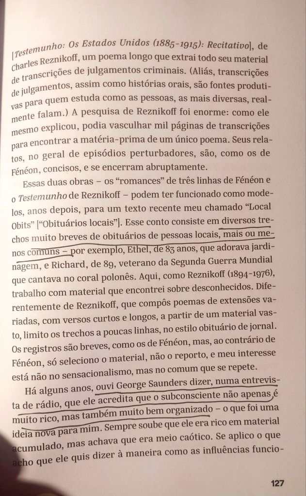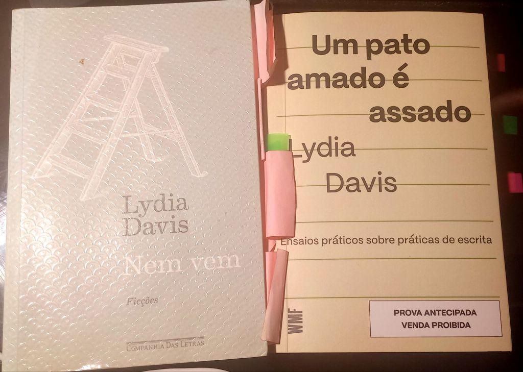 Costumo dizer que se você quer praticar o conto, é só ler o par de livros Tipos de Perturbação e Nem Vem, de Lydia Davis (Companhia das Letras). Mas a WMF Martins Fontes, na série Errar Melhor, curada por Joca Reiners Terron, acaba de desovar Um Pato é Assado (trad. Camila von Holdefer), que traz ensaios da diva sobre suas abordagens de escrita criativa (ela também é professora). Tirei o capítulo abaixo do livro novo e alguns microcontos do Nem Vem para nos trazer inspiração.