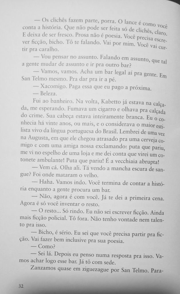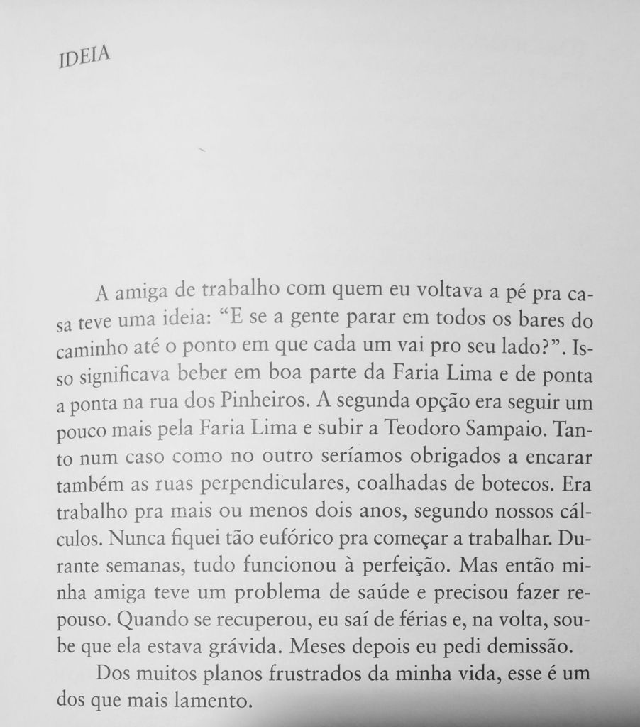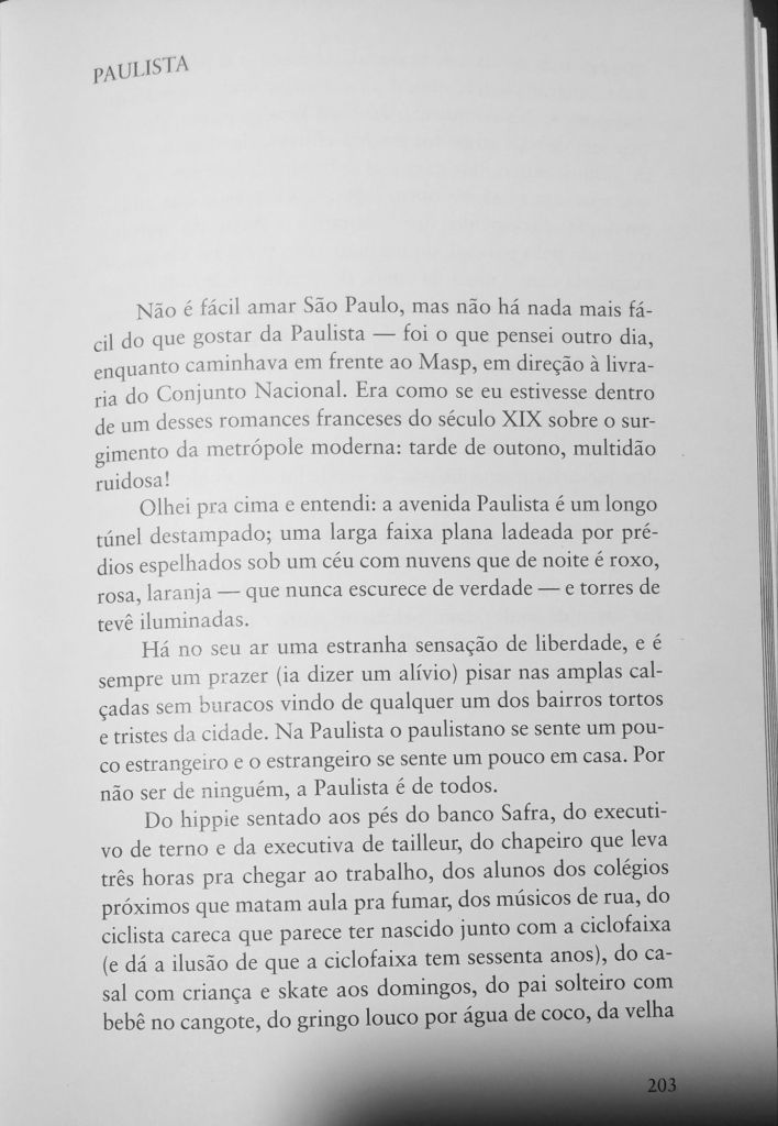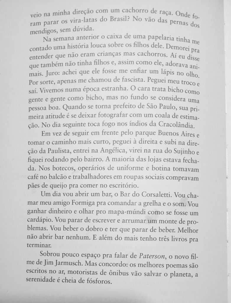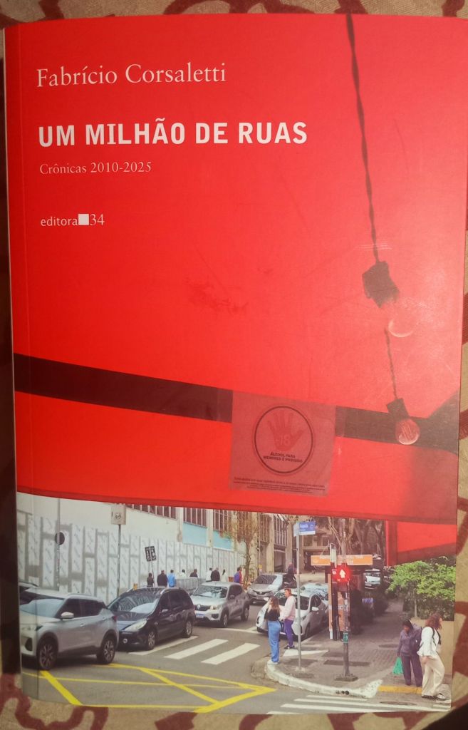 O poeta, contista e novelista paulista Fabrício Corsaletti é um dos melhores cronistas brasileiros em atividade, pena que nenhum jornal nem revista ou site oferece espaço pra ele publicar seus textos geniais toda semana. Mas dá pra ler muitos deles nesta antologia publicada ano passado pela 34, Um Milhão de Ruas.