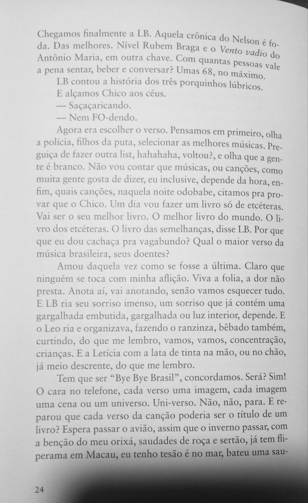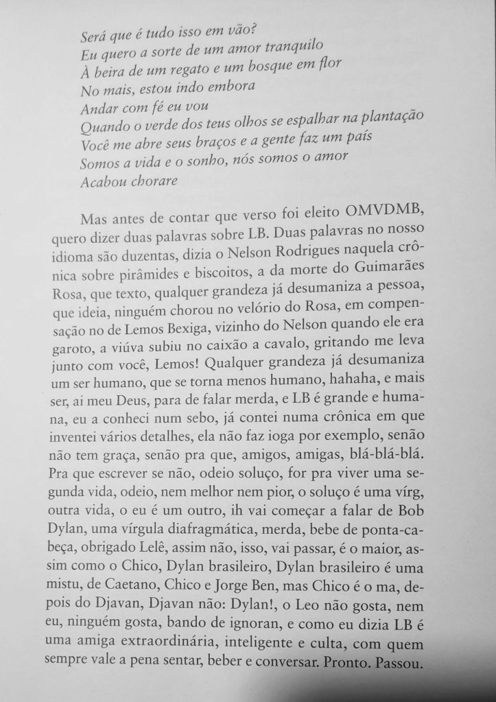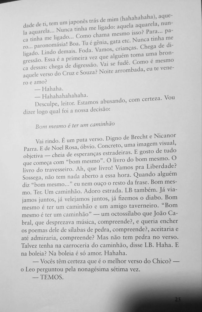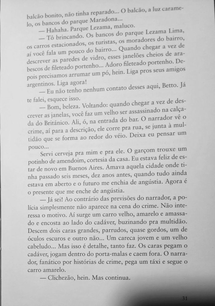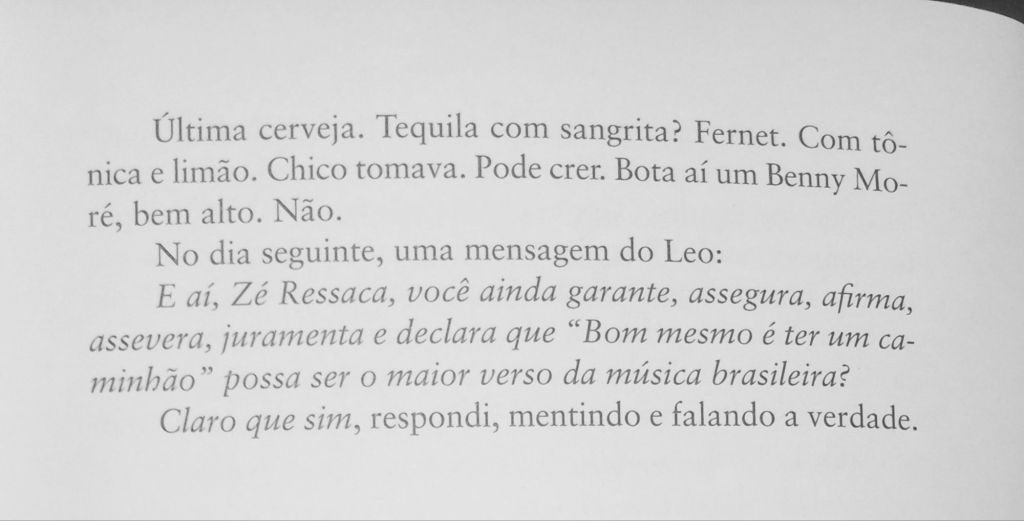 Não se escreve crônica com a bunda na cadeira. É preciso que o cronista tenha andado bastante, conhecido muito geografia — tanto cartográfica quanto humana. É preciso olhar para o lado de fora para poder imprimi-lo com seu sentimento interior.
